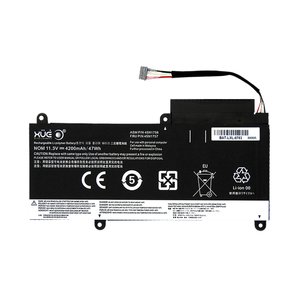 Fabricada con celdas de polímero de litio de alta calidad, garantiza una larga vida útil y seguridad frente a sobrecargas, sobrecalentamientos o cortocircuitos. La batería XUE® 45N1756 es totalmente compatible con varios modelos ThinkPad de las series E450 y E460, y cumple con las especificaciones OEM para un funcionamiento óptimo.