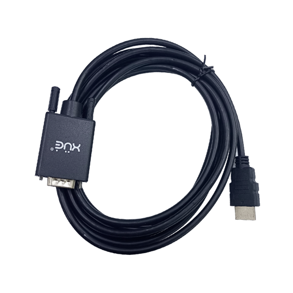 El Cable HDMI a VGA 3.0 Metros XUE® permite convertir señal digital HDMI a señal análoga VGA, facilitando la conexión de laptops, PCs, consolas o reproductores con salida HDMI hacia monitores o proyectores con entrada VGA.