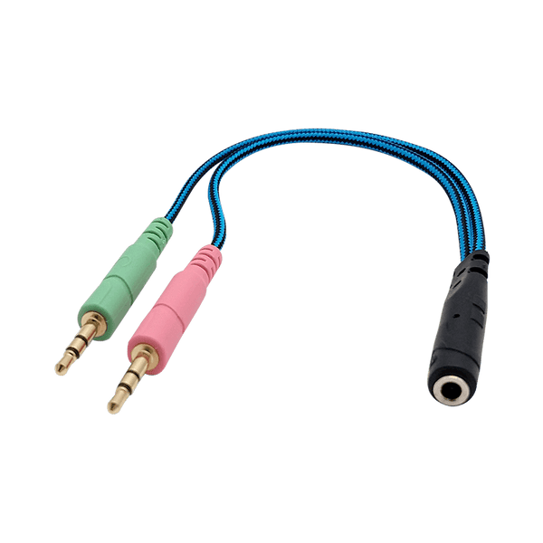 Diseñado para Conectar Diademas o Manoslibres jack 3.5mm de una sola salida en PC o Laptop de 2 entradas 3.5mm.