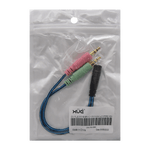 Convertidor (splitter) versátil, que permite utilizar las diademas o manos libres de una sola salida en el computador o laptop de doble entrada (una para audio y otra para micrófono).