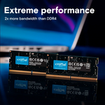 La memoria Crucial DDR5-5600 para laptops ofrece un rendimiento superior, permitiendo transferencias de datos un 50% más rápidas que la generación DDR4. Esto se traduce en tiempos de carga optimizados, transferencias de archivos eficientes y una reducción del lag, mejorando la experiencia del usuario. Gracias a su tecnología avanzada, proporciona una mayor eficiencia en el multitasking, permitiendo abrir múltiples aplicaciones y pestañas con mayor fluidez.