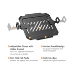 ¡Mejore su configuración de trabajo con el soporte para computadora portátil NBH-8! Este equipo esencial cuenta con agujeros VESA (75x75, 100x100) para una fácil compatibilidad con la mayoría de los brazos del monitor. Las garras ajustables con corte de cable sostienen de forma segura los portátiles de 12'''~17''', asegurando que todos los puertos sean accesibles. El panel ventilado proporciona una buena ventilación y disipación de calor para el mejor rendimiento del portátil.