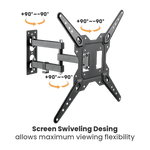 Sus capacidades de movimiento completo permiten una inclinación de +3°~-10° y un giro de +90°~-90° de su televisor, lo que maximiza la flexibilidad para ver fácilmente desde diferentes ángulos en la habitación. El clip de cable integrado mantiene los cables organizados y protegidos.