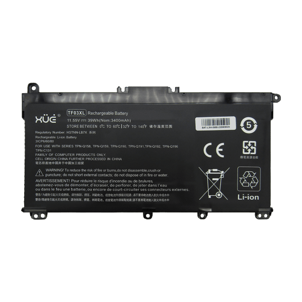 La batería XUE® TF03XL es el reemplazo ideal para portátiles HP Pavilion de las series 14M-CD, 14-BF, 15-CC y X360. Con un voltaje de 11.55V y capacidad de 39Wh (3400mAh), proporciona energía estable, rendimiento duradero y una excelente eficiencia para uso diario o profesional.