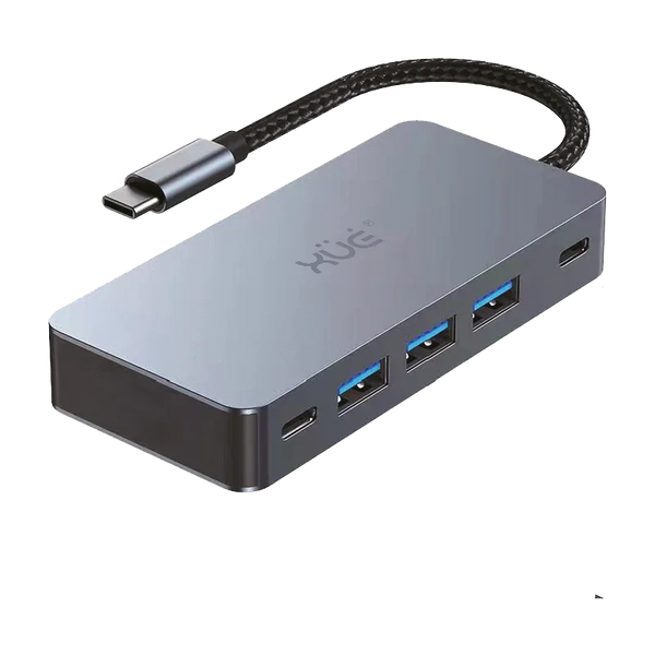 La docking station USB-C 7 en 1 de XUE® cuenta con doble salida HDMI 4K, 3 puertos USB 3.0, 1 puerto USB-C para transferencia de datos y 1 puerto USB-C PD para carga rápida de hasta 100W. Diseñada en aluminio tipo aviónica, es compacta, elegante y funcional, ideal para expandir las capacidades de laptops modernas con un solo puerto USB-C.
