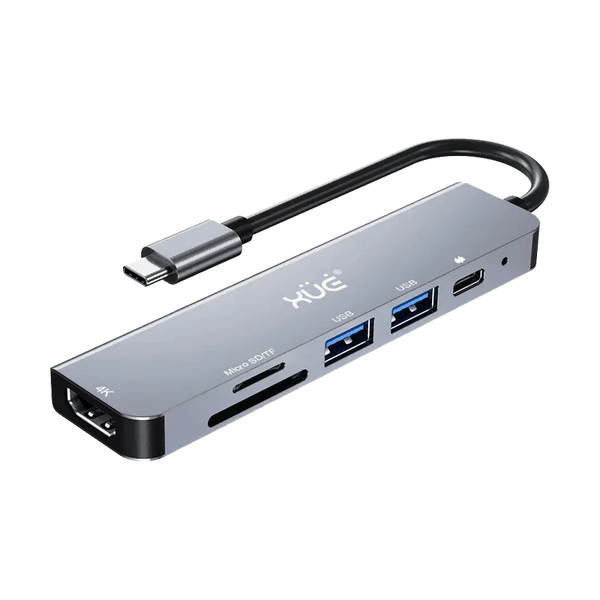 La docking station 6 en 1 de XUE®, con interfaz USB-C 3.1 Gen 1, es una solución compacta y versátil para expandir la conectividad de tu portátil. Incorpora un puerto HDMI 4K, suministro de energía de hasta 100W (PD), puertos USB 3.0 y USB 2.0, además de ranuras para tarjetas SD y TF, lo que la convierte en una herramienta ideal para productividad, entretenimiento y transferencia de datos.