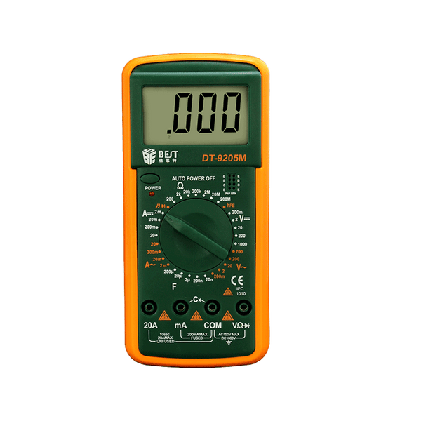 El Multímetro Digital BEST DT-9205M es una herramienta confiable y precisa diseñada para técnicos, estudiantes y profesionales de la electrónica. Permite medir voltaje, corriente (AC/DC), resistencia, capacitancia, diodo y transistores,...