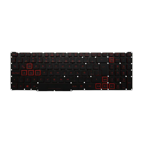 Teclado para portátiles Acer Nitro 5 y Predator Helios, compatible con modelos que utilizan procesadores Intel Core i5 de 9ª generación. Diseño sin marco (frameless) y retroiluminación roja (backlight red) que conserva la estética gamer original del equipo. Presentación en idioma español (Latinoamérica) y colores negro con detalles en rojo. Ideal como reemplazo original por daño o desgaste, asegurando compatibilidad total y una instalación sencilla.